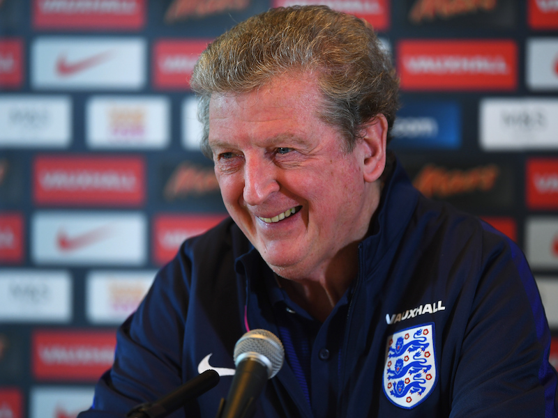 記者会見で笑顔を見せるイングランド代表のホジソン監督 [写真]=Getty Images