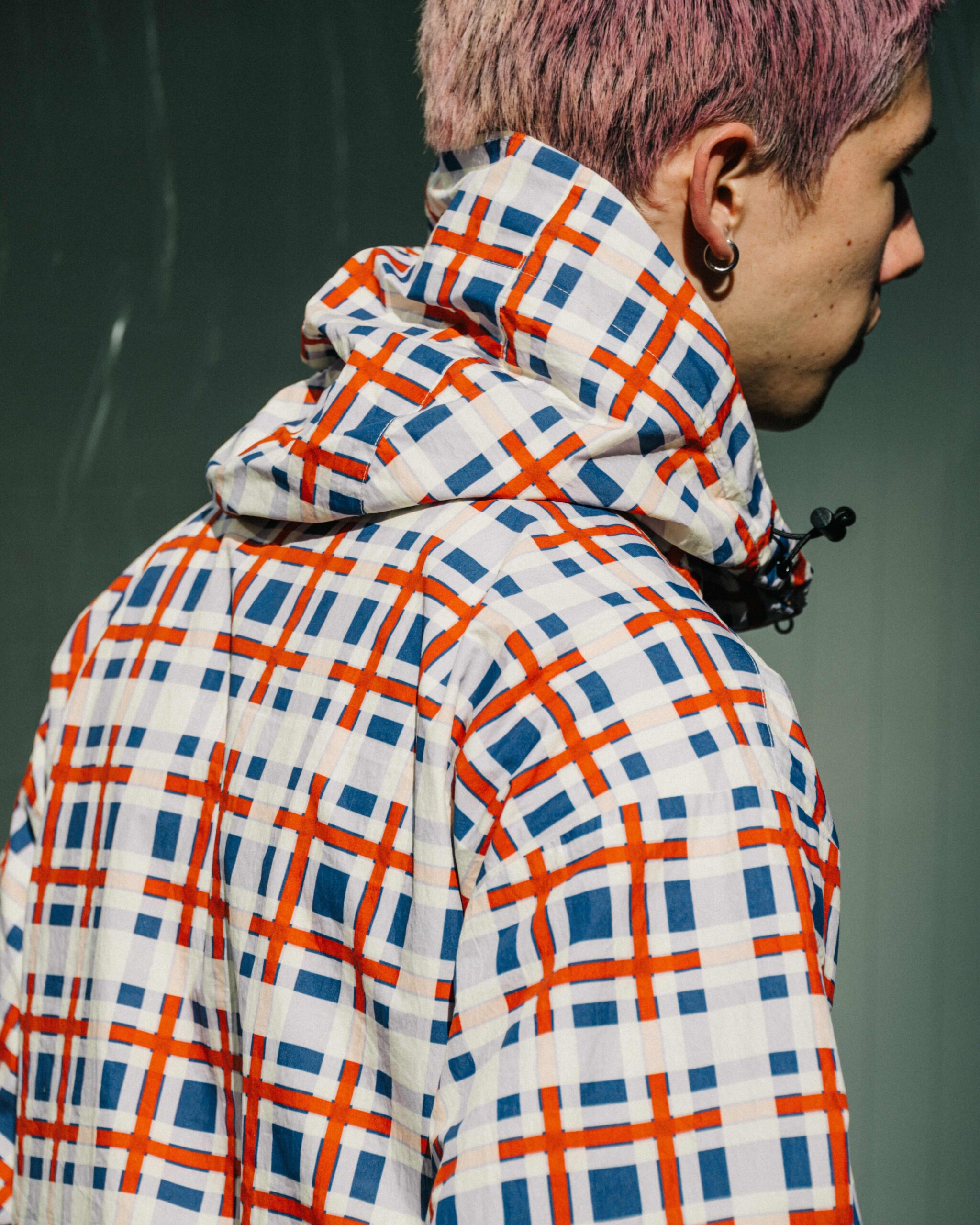 本LOOKでも着用しているオーバープレイドジャケットは、今回のコレクションを象徴する一着です。軽やかな着心地と高い汎用性を備え、再構築されたプレイドパターンがスタイリングに程よいアクセントを加える仕上がりに。