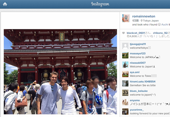 シャルケに所属するMFロマン・ノイシュテッターが、同僚のDF内田篤人に東京を案内してもらっていたことが判明した。自身の公式インスタグラムを更新し、東京観光についてコメントしている。