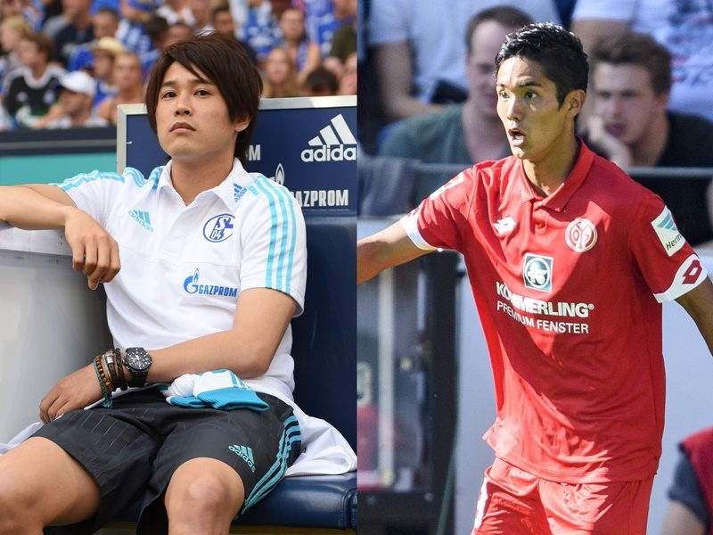 シャルケの内田篤人(左)とマインツの武藤嘉紀(右) [写真]=Bongarts/Getty Images