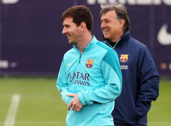 マルティーノ監督(右)がメッシ(左)に言及 [写真]=FC Barcelona via Getty Images