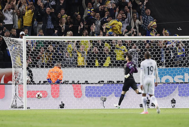 グループA首位のフランスは、3ポイント差で2位につけるスウェーデンと対戦。オリヴィエ・ジルーのボレーシュートで先制したが、ジミー・ドゥルマズにゴールを許し、前半のうちに追い付かれてしまった。そして迎えた後半アディショナルタイム3分、バックパスを受けたロリスが最後の攻撃を仕掛けようとペナルティエリア外から前線へパス。しかし、このボールに反応したFWオラ・トイヴォネンにハーフウェイライン付近からのダイレクトシュートを決められ、劇的な逆転負けを喫した。