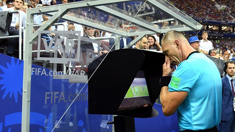 今大会では、初の試みとしてビデオ・アシスタント・レフェリー制(VAR)を導入。ドイツのブンデスリーガを始め、欧州各国で続々と実践導入されているVARは、試合中に審判の死角でラフプレーが行われたり、誤った判定を防ぐため主審をサポートすることを目的に導入された。大会3日目のフランス代表対オーストラリア代表の一戦で初めて利用されると、グループステージのイラン対ポルトガルではVARによって2度のPK判定が下された。この時点で大会中のPK数は20となり、ワールドカップの最多記録を更新した。レフェリーが得点シーンなどをビデオで確認することができるためミスジャッジが減る一方、これまでファールとされなかったコンタクトに対する判定が厳しくなったと、システムに対する不満の声も多く上がった。
