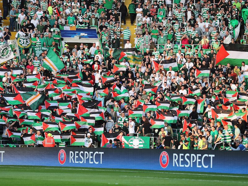 パレスチナ国旗を掲げるセルティックサポーター [写真]=Getty Images