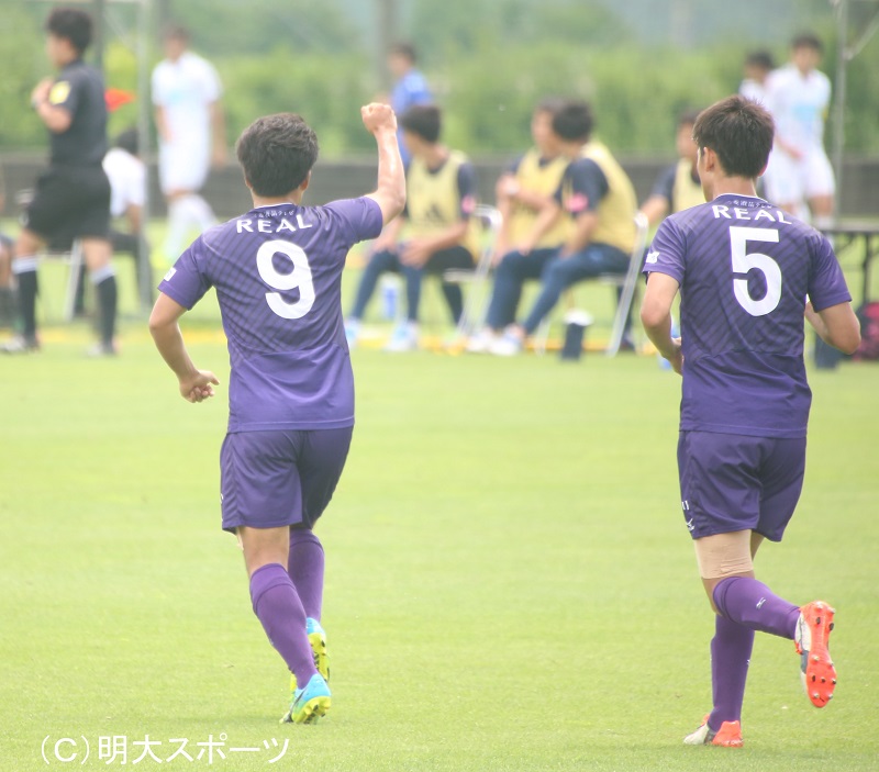 初戦のプレッシャーを乗り越えた。前半、「負けたら終わりのトーナメントの初戦は雰囲気も環境も違うので、非常に難しいゲームになる」(栗田大輔監督)と初戦が故の硬さと相手のハイプレスによりなかなか勢いに乗れない。チャンスこそ作るものの決めきることができなかった。そんな一進一退の攻防が続く中、21分、細かいパスから展開し、丹羽詩温が落としたボールを土居がゴール左に押しこみ、先制点を挙げる。しかし、流れは変わらず。簡単なミスからピンチを迎え、守護神、服部一輝主将の好セーブに救われることもあった。そこで、ハーフタイムに「栗田監督から前提として『戦え』と言われました」(土居)とギアを上げるよう指示が入る。すると、迎えた後半は守備が安定し出し、徐々に明治大らしいサッカーに。打たれたシュート数も前半は3本だったのに対し、後半は1本に抑え、相手に得点の機会を与えず。3試合連続無失点勝利を果たした。