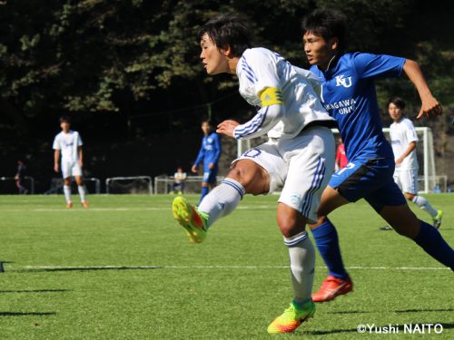 先制点を決めた神奈川大MF中山知之(左)と青山学院大FW窪園大地(右) [写真]=内藤悠史 JR東日本カップ2016 第90回関東大学サッカーリーグ戦2部 第18節 【スコア】 神奈川大学 2-1 青山学院大学 【得点者】 1-0 57分 中山知之(神奈川大学) 1-1 79分 小泉佳穂(青山学院大学) 2-1 83分 斎藤健太(神奈川大学) 写真=内藤悠史 フォトに関する記事をもっと見る By サッカーキング・ネクスト編集部 高校世代を中心とした育成年代サッカー総合情報サイト #内藤悠史 #神奈川大学 #関東大学リーグ #青山学院大学