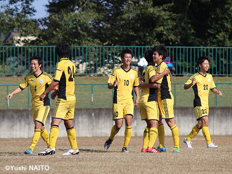 前半はこれだけでは終わらない。2-1でハーフタイムを迎えるかと思われたアディショナルタイム4分、またもセットプレーから明治学院大が3点目を記録する。ペナルティーエリア内での混戦から行武が押し込み、貴重なゴールを決めた。3-1で前半が終了。2点差で勝負の後半を迎えることとなった。