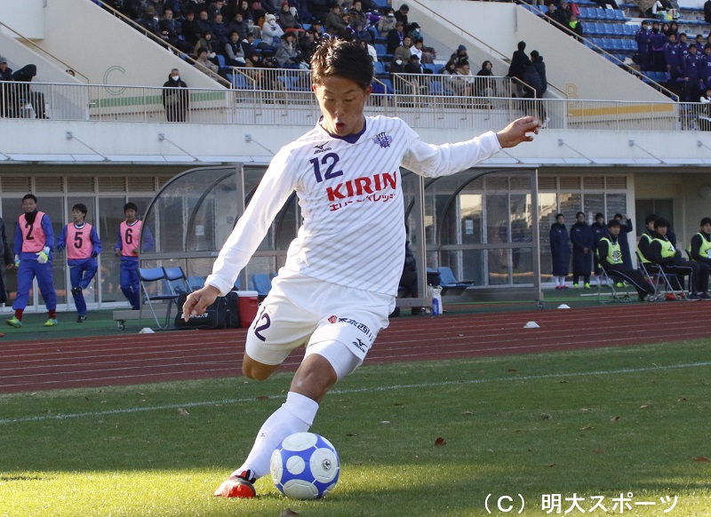 好調なスタートを切った。トーナメント形式で行われる今大会に明治大学は関東第1代表のシードとして2回戦から出場。1回戦を勝ち上がった九州共立大学に立ち上がりから攻め込み、7分には、先日愛媛FCへの来季加入内定を発表した丹羽詩温がゴールネットを揺らし、勝利の流れを作った。その後もルーキー・中村健人が2得点を挙げるなど、5人の選手がゴールし6-0で圧勝。相手のシュート数を0に抑え、今季最多得点を記録した。