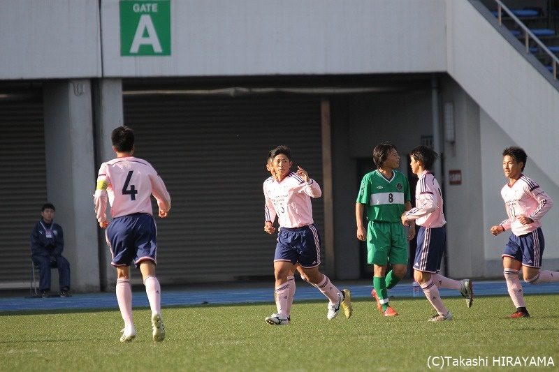 「もともとディフェンス3枚で『3-4-3』みたいなイメージですけど、守備時はサイドの選手が下がり気味になりますので、5枚となります」と海老沼監督が説明するシステムを導入したのは夏のインターハイ予選で県内のライバルである矢板中央に敗れた後だったという。「インターハイの時は『4-4-2』だったんですけど、負けた後にこれじゃダメだということで、ああいうフォーメーションになって、うまくフィットした」と語るのは先制点を決めた左サイドバックの梅澤だ。2点目をクロスでアシストした右の小澤亮祐とともに、豊富なアップダウンでチームを支える生命線というべき存在だ。