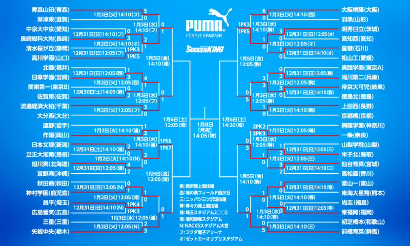 3回戦の結果は以下の通り。準々決勝は5日に浦和駒場スタジアムと駒沢陸上競技場で4試合行われる。