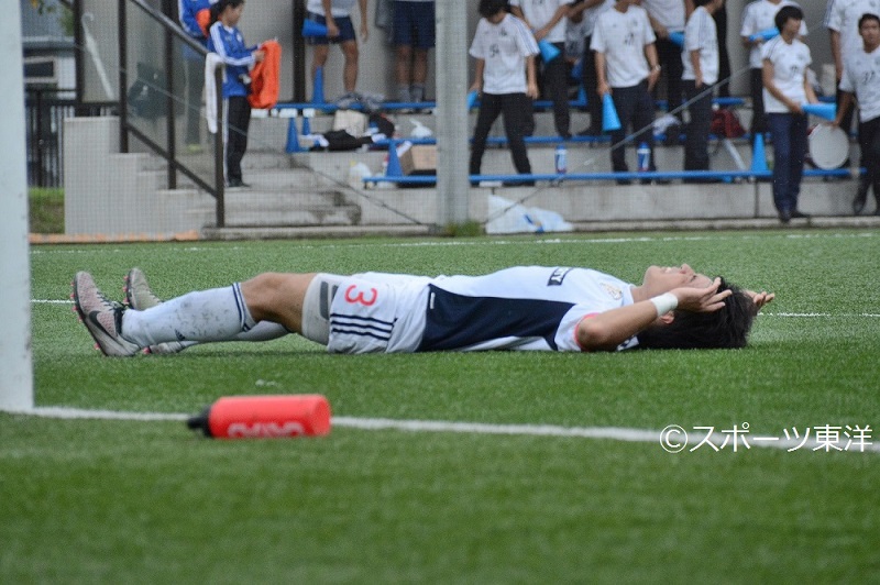 「相手がやりたいようなゲーム展開に持っていかれてしまった」。試合後古川毅監督が重い口調で言ったように、開始から強いプレスをかけてくる相手に、ディフェンス陣はかなり苦しめられた。思うようにパスを回せず、ボールを奪われてカウンターをうける場面も見受けられた。迎えた20分、カウンターで攻め込まれて与えたCK。一度はクリアするものの、その後のクロスに頭で合わされ先制点を許す。後期リーグ4試合目にして初めて追いかける立場になった。25分には坂元達裕がゴール右上に狙い澄ましたシュートを打つも、GKの好セーブに阻まれる。反撃に出たい後半、途中出場の仙頭にボールを集め、果敢にシュートを狙っていく。64分には最大のピンチを迎えるも、徳市寛人が体を張ったブロックで追加点を許さない。このプレーがチームに勢いをもたらし、選手たちは猛攻を仕掛ける。すると81分仙頭がペナルティエリアで倒され、PKを獲得する。これを自らきっちりと決め、ついに試合を振り出しに戻す。その後も宮野直也の惜しいシュートがあるなど1部昇格に向け、勝ち点3を狙いにいった。しかし90分、左サイドから上がったボールは浦上仁騎の頭を越えると、そこに待っていた選手に豪快に叩き込まれてしまう。いい時間に追いつけただけに、この失点は痛かった。全員でゴールに向かうも残された時間は少なく、そのまま試合終了。選手たちは肩を落とした。