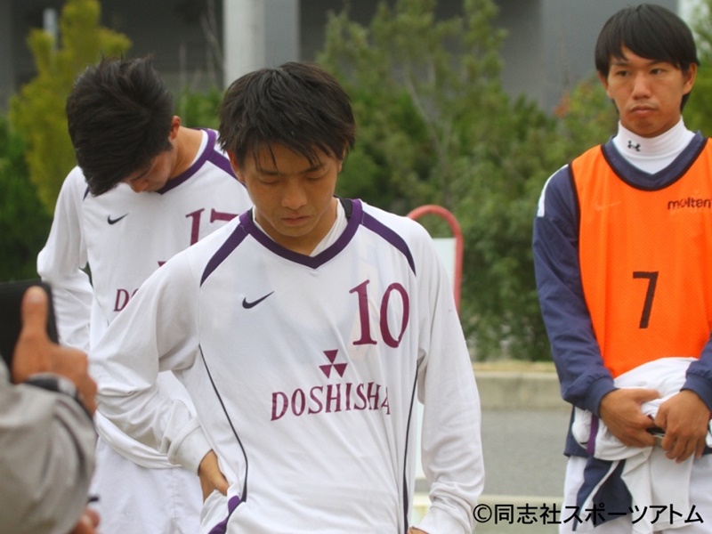 崖っぷちに追い込まれた。90分を戦い終えた選手たちは、ぐったりとした表情を浮かべピッチを去った。ただただ呆然とする選手、両手で顔を覆う選手、目元に涙を浮かべる選手もいた。それを見つめる松井修平主将の視線は宙をさまよった。同志社大は自動降格圏脱出のチャンスで、1年間積み上げた“同志社のサッカー”を出し切れずに敗れた。