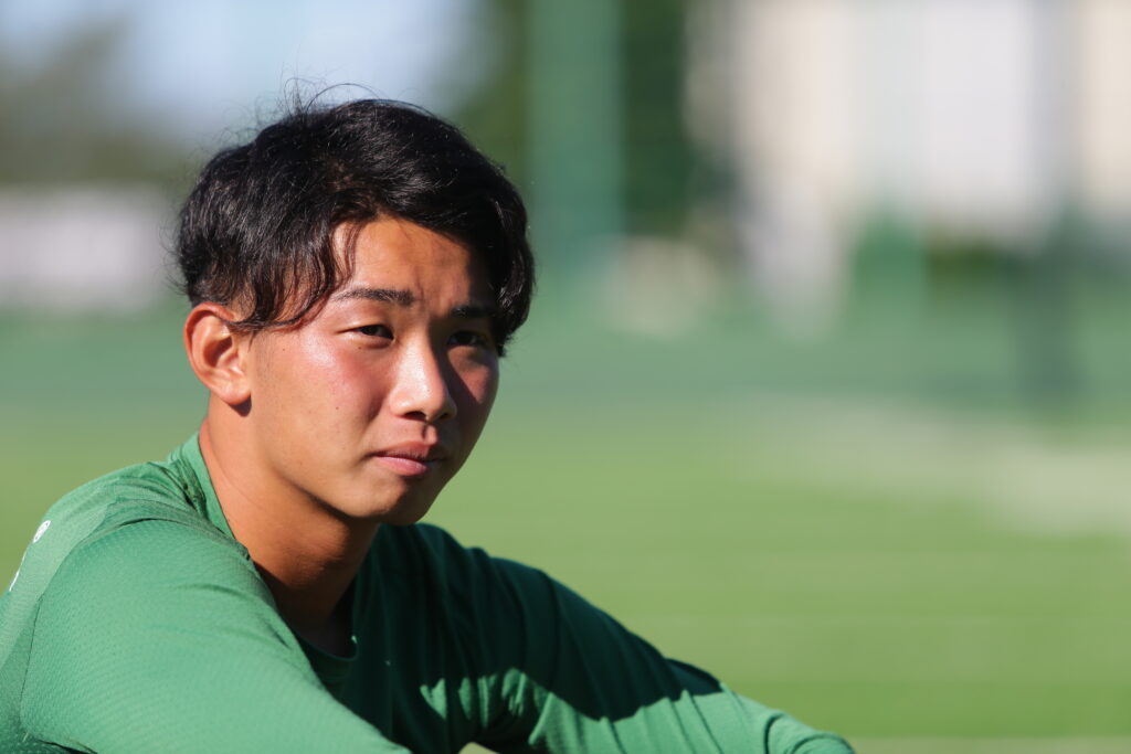 あとは、キックの精度が自分の武器だと思っています。今はボランチをしていますが、もっと得点に絡み結果で示すことで、チームや明治大学での絶対的な存在にならなければいけないと思っています。