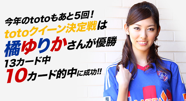 2013シーズン3回目となるtotoクイーンの称号を見事ゲットしたのは、J:COM『FC東京ビバパラダイス』のMCを務める『アイドリング!!!』19号の橘ゆりかさんとなった。
