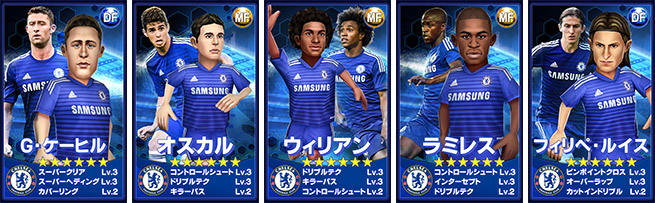 『チェルシーFCガチャ』で入手できるチェルシーFC限定選手は、前回タイアップ時の[I]オスカル、[I]イバノビッチ、[I]セスク、[I]A・シュールレ、[I]ドログバ選手に新たに[I]G・ケーヒル選手を加えた6選手の中から1選手となります。詳しくはゲーム内NEWSで、ご確認いただけます。