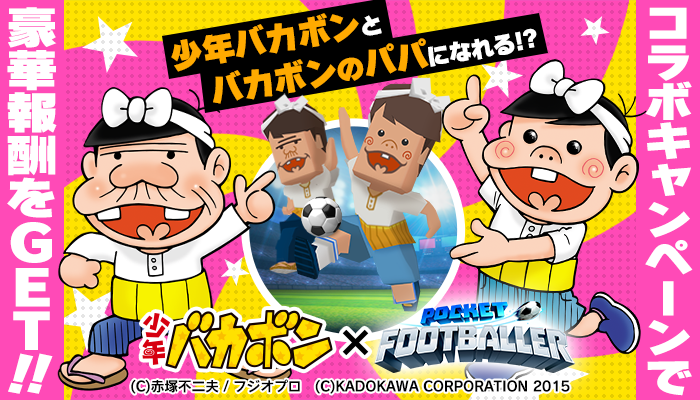 株式会社カヤックは、現在日本国内および海外で配信中の共闘スポーツRPG『ポケットフットボーラー』(iOS/Android端末向け)で、12月14日(月)より新イベント「少年バカボン参戦!!おバカなシュートを決めるのダ!!」を実施している。