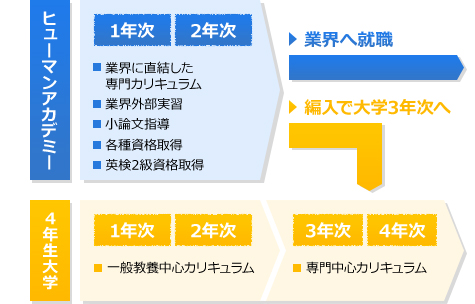 ヒューマンの2年間で専門的な知識・経験・資格を身につけ3年次に大学へ編入学
