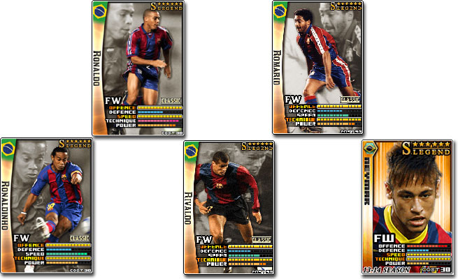 2013年夏、FCバルセロナはFWネイマールをクラブ史上最高額となる約74億円の移籍金で獲得。ブラジルの新たな至宝を加えてチーム強化に成功した。これまでFCバルセロナは、多くのブラジル人選手が攻撃の中核を担ってきた。93-95年には、ロマーリオが在籍。加入一年目に30ゴールを奪いリーグ得点王に輝いている。96年夏には“怪物”ロナウドが加入。わずか1シーズンの在籍だったが、驚異の決定力で34ゴールを奪い得点王となった。97年に加わった“左足の魔術師”ことリヴァウドは97-98、98-99シーズンのリーグ連覇に大きく貢献した。2003年に加入したロナウジーニョは、チームにファンタジーを加え、数々のタイトルをもたらした。歴史の壁を飛び越えて実現したブラジルのクインテット・マジコ(魔法の5人組)を、キミのチームで再現してほしい。