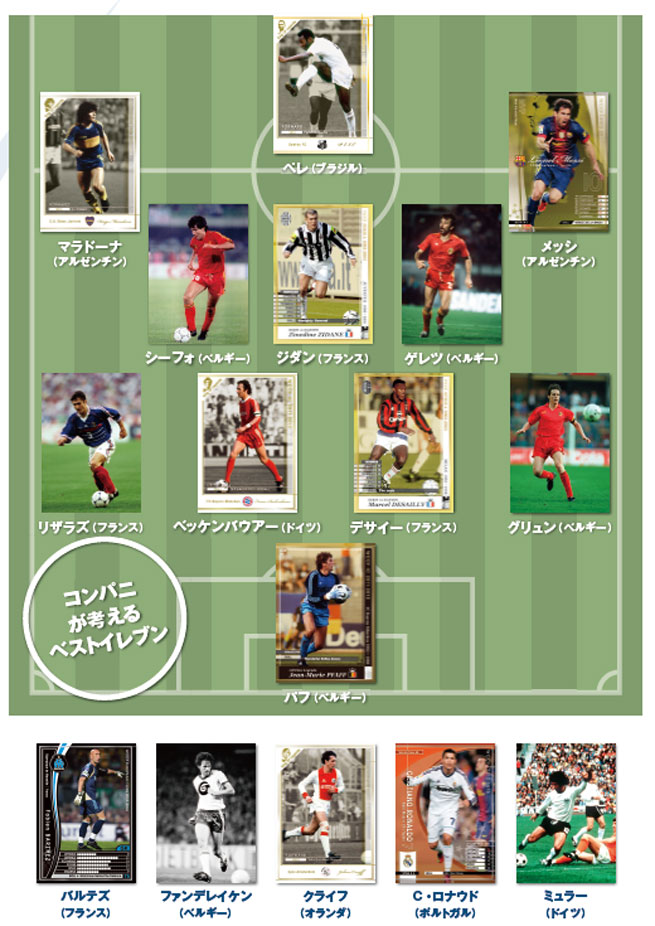 コンパニ オーケー。GKはベルギー伝説の名手ジャン・マリー・パフ。DFはさっき言ったグリュンとデサイーに、フランツ・ベッケンバウアー、ビセンテ・リザラズ。MFはベルギーの英雄エリック・ゲレツとエンツォ・シーフォのコンビに、ジネディーヌ・ジダンを加えよう。