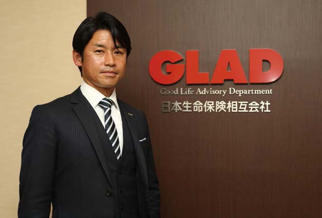 現在勤務する日本生命保険相互会社に入社したのは2010年4月のことである。「コンサルティング・ライフ・プロデューサー」との肩書きで個人・法人へのリスク・コンサルタントとして保険営業を手掛ける日々は、多くの出会いに満ちていて刺激的だ。休日には横浜市青葉区の少年サッカーチーム「あざみ野FC」でコーチとして指導にあたり、忙しい毎日を過ごしている。