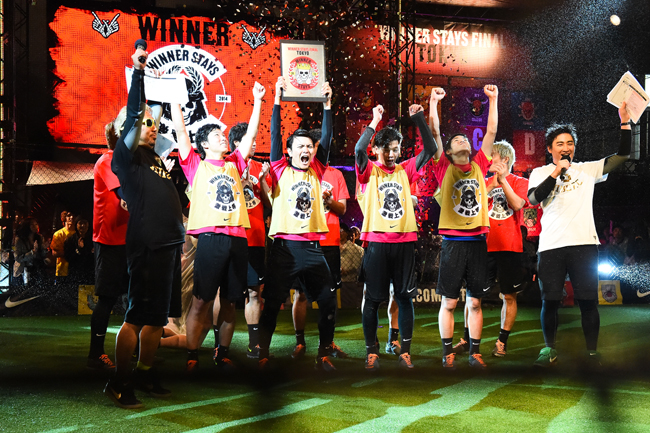 6月7日、ナイキが世界29都市で同時開催する超攻撃的な変則ルールのフットボール大会「WINNER STAYS 激戦上等」の決勝ラウンドが表参道のスパイラル横・特設ピッチで行われ、フィスコフットサルアレナとしまえん会場代表のZAMAGICが優勝を果たした。