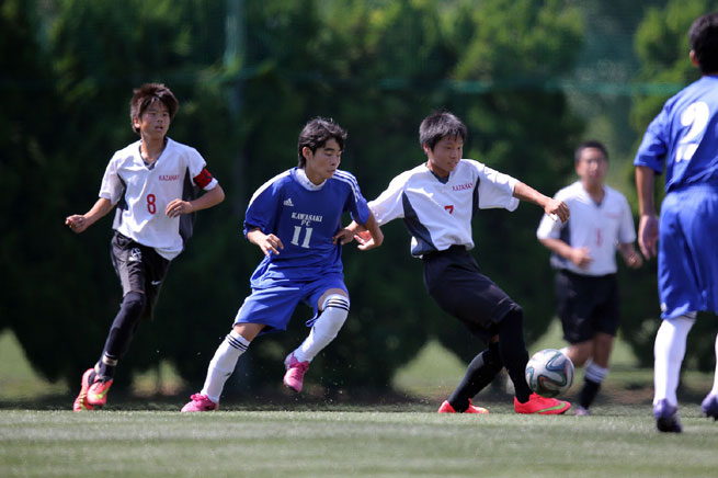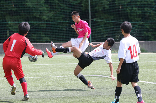 両日とも天候に恵まれ、大会アンバサダーの元日本代表・中山雅史氏と元日本代表・北澤豪氏が見つめる中、11人対11人による12分ハーフのフルコートマッチで開催。女子選手で編成された広島地区代表のマリットや1年生だけで出場した同地区代表のMETEORO岡大附中、サッカー部や野球部、ハンドボール部らの男女混成チームによる仙台地区代表のハニー仙台など、特色のあるチームが熱戦を繰り広げた。