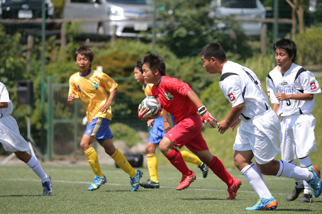 そして、初日に7試合、2日目に8試合を戦い抜いた結果、ついに優勝決定戦に進出する2チームが決定した。Aリーグを勝ち抜いたのは、仙台地区代表の岩出山・古川黎明中学校。2つの中学校の合同チームだったが、丁寧にパスを繋ぎ、4勝1敗と安定した成績で突破を決めた。背番号7を背負う狩野寛和君は「相手は地区予選を勝ち抜いたチーム達だったので手強かったけれど、自分達のサッカーを出せた」と満足顔を見せた。