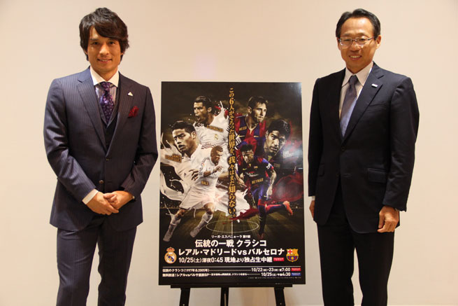 世界を代表するリーガ・エスパニョーラの2大チーム、レアル・マドリード(レアル)とバルセロナ(バルサ)。永遠のライバルが誇りをかけて戦う“伝統の一戦クラシコ”が、10月25日(土)深夜0:45からWOWOWで独占生中継される。放送に先駆け10月16日、都内某所で元日本代表監督・岡田武史さんとリーガ専属解説を務める元日本代表キャプテン・宮本恒靖さんによる豪華対談『レアルvsバルサ直前SP ~宮本恒靖vs岡田武史、クラシコを斬る』の公開収録が行われた。選手・監督とそれぞれ違う立場から日本代表を牽引してきた2人が、世界最高峰の戦いであるクラシコの見どころを大いに語った。