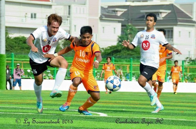 カンボジアンタイガーは、前半はおよそ60:40でボールを支配して優勢に試合を進めた。しかしながら、放つシュートは運に見放され、再三にわたりゴールバーやポストに嫌われ、得点に至らず。相手の「ナショナルポリス」も2回ほどチャンスはあったものの、結局0-0で折り返すスリリングな展開となった。