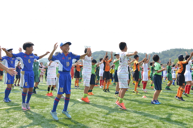 そして、1ブロックにつき4チーム、AからLまでの12ブロックに分かれて戦う予選リーグがスタート。灼熱のピッチの上で、子どもたちは大きな声を出しながら、元気はつらつにプレーした。前線から果敢にプレッシングを掛けるチームや、ボールテクニックに優れるチーム、身体能力の高さを生かして相手を圧倒するチームなど、各チームの持ち味を存分に発揮する見応えのある攻防が、大会序盤から見受けられた。