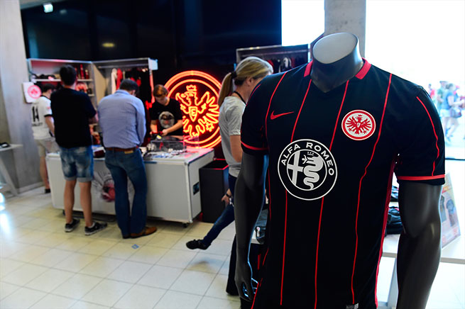 翌日はいよいよ試合へ。この日が開幕戦ということもあり、午前中から街中にはフランクフルトのユニフォーム姿のサポーターが溢れていました。ビールを片手に応援歌を歌ったり、足早にスタジアムに向かったりと、町を歩いているだけで試合日ならではの高揚感が伝わってきます。