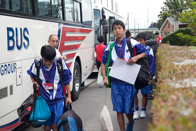 26日12時50分、選手たちを乗せたバスが時之栖スポーツセンター裾野グラウンドに到着する。予選を経験していることもあり、顔なじみのスタッフと言葉を交わしたり、カメラマンの前でポーズを取ったりと、長旅の疲れもない様子で準備を整え、開会式に臨む。
