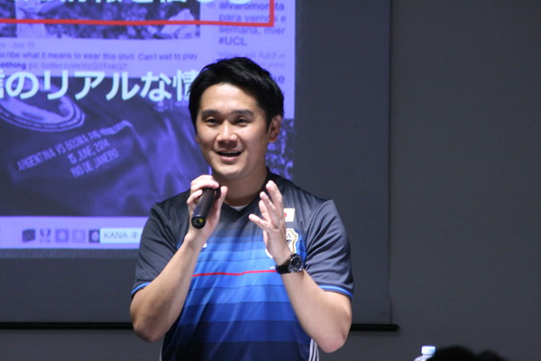 講師を務めたのは、アディダス ジャパン株式会社 ブランドコミュニケーション シニアマネージャーを務める本城賢嗣氏。アパレルメーカー、広告代理店を経て2005年にアディダス ジャパン株式会社へ入社、セールスプロモーション部門に籍を置く。2008年よりブランドコミュニケーションに配属され、2014年9月より現職となり、アディダス ジャパンにおけるフットボールのブランドコミュニケーション部門を統括。最近では、新たなスパイクモデルのX(エックス)とACE(エース)のローンチキャンペーン、プロモーションを手掛けている。